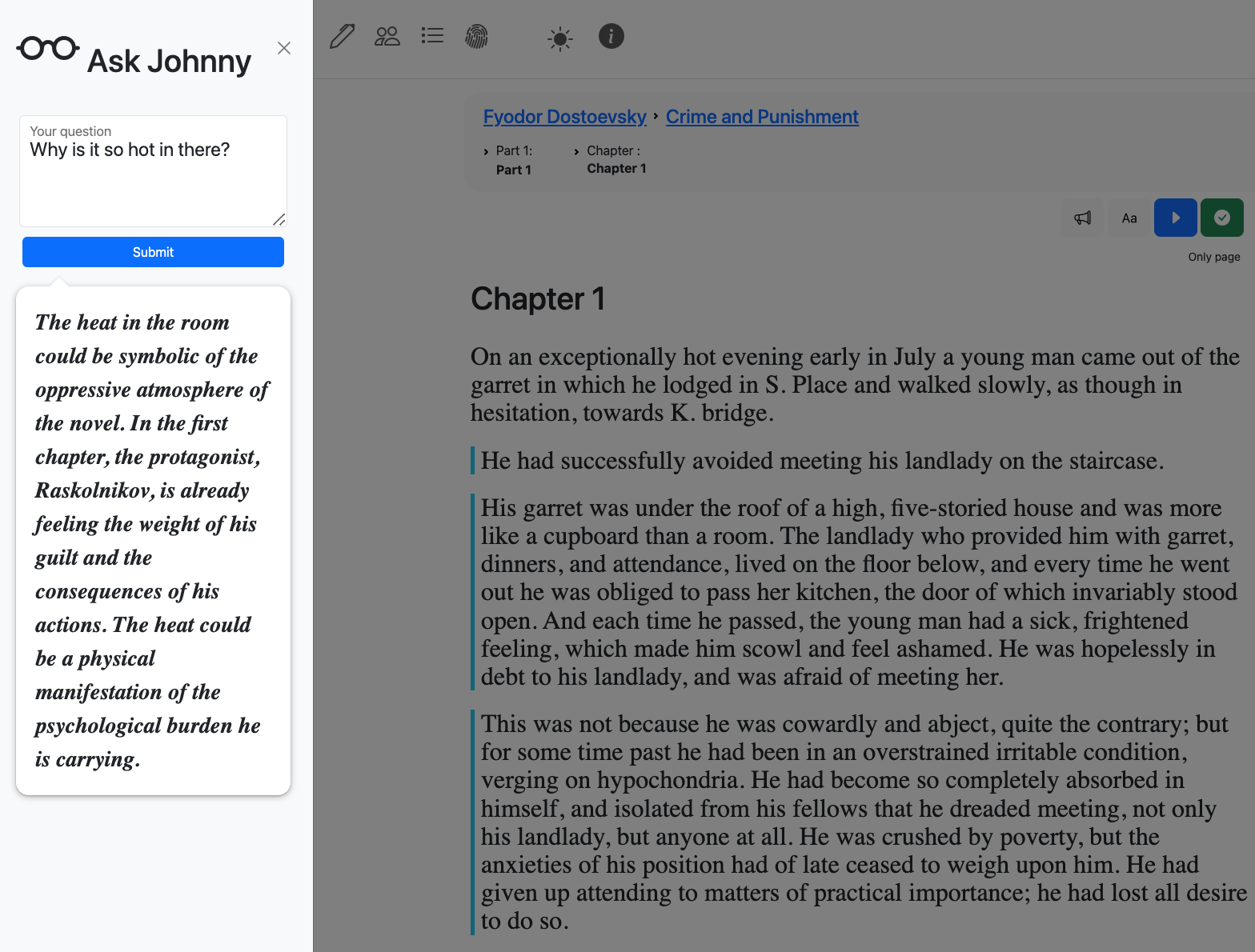 As you read, ask our new AI-powered reading assistant any question related to the book you are reading.